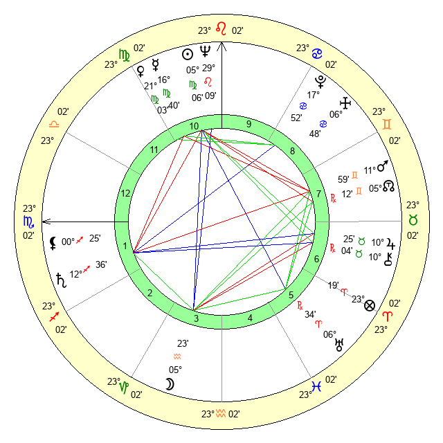 | Neptune | 29 Leo 10 | 1 Aries 26 | 1 Virgo 24 |
