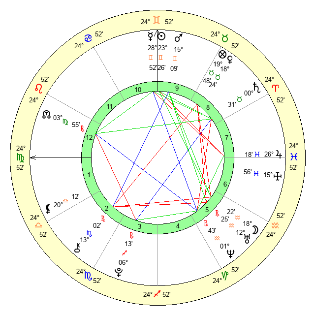 | Sun | 23 Gemini 26 | 23 Gemini 53 | 19 Cancer 11 |