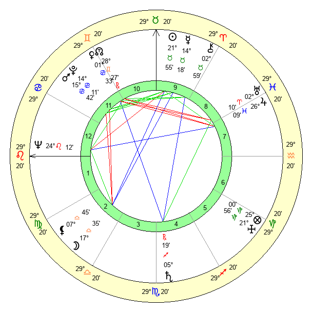 | Sun | 21 Taurus 56 | 23 Taurus 11 | 25 Leo 42 |