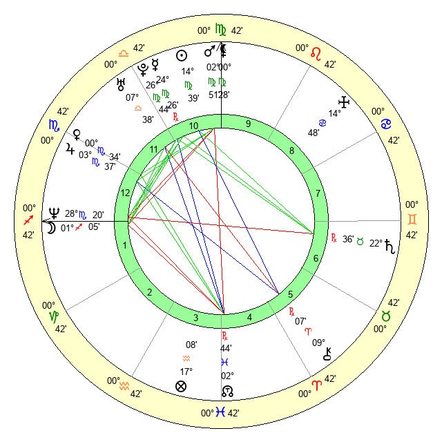 | Mercury | 24 Virgo 25 | 9 Virgo 57 | 12 Scorpio 12 |