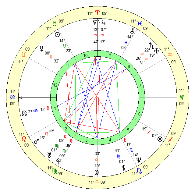 | Mercury | 0 Gemini 32 | 22 Aries 11 | 5 Cancer 10 |