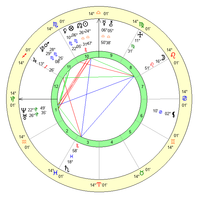 | Moon | 16 Leo 49 | 23 Virgo 44 | 19 Virgo 58 |