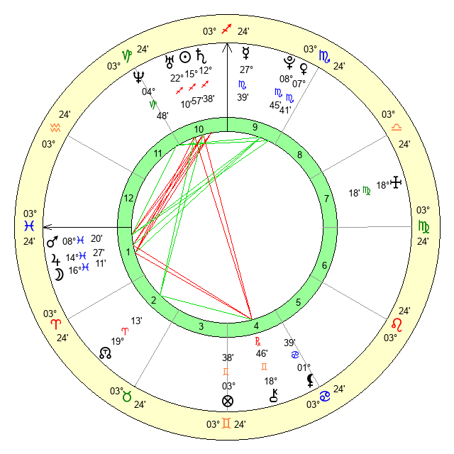 | Jupiter | 14 Pisces 31 | 24 Cancer 0 | 20 Pisces 13 |