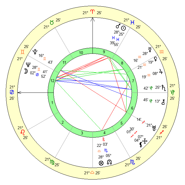 | Sun | 25 Pisces 55 | 27 Pisces 6 | 24 Cancer 51 |