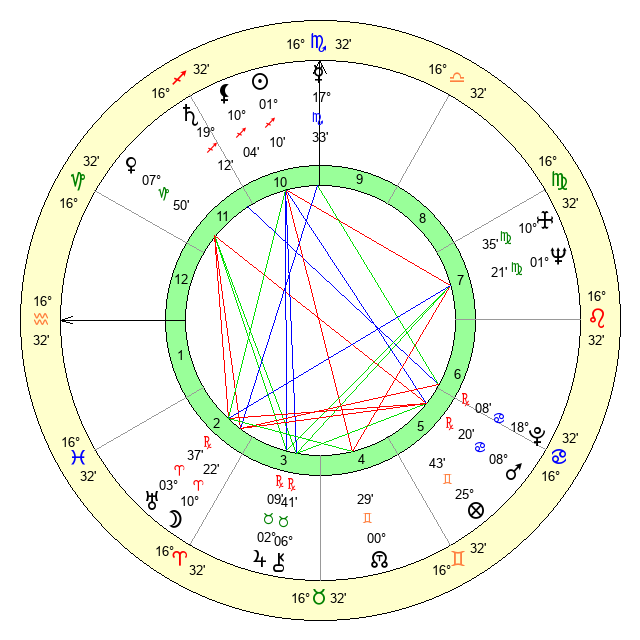 | Neptune | 1 Virgo 22 | 29 Pisces 26 | 29 Leo 45 |