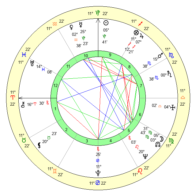 | Moon | 5 Virgo 31 | 7 Sagittarius 50 | 22 Taurus 23 |