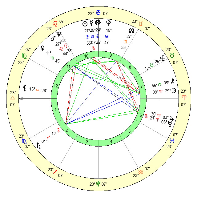| Sun | 27 Cancer 55 | 29 Cancer 11 | 3 Scorpio 17 |
