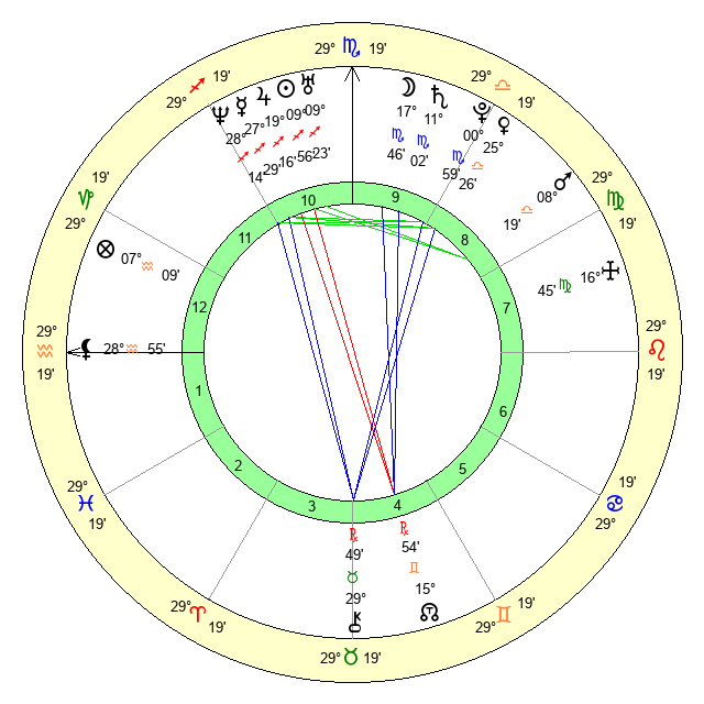 | Moon | 17 Scorpio 42 | 8 Taurus 43 | 19 Taurus 14 |