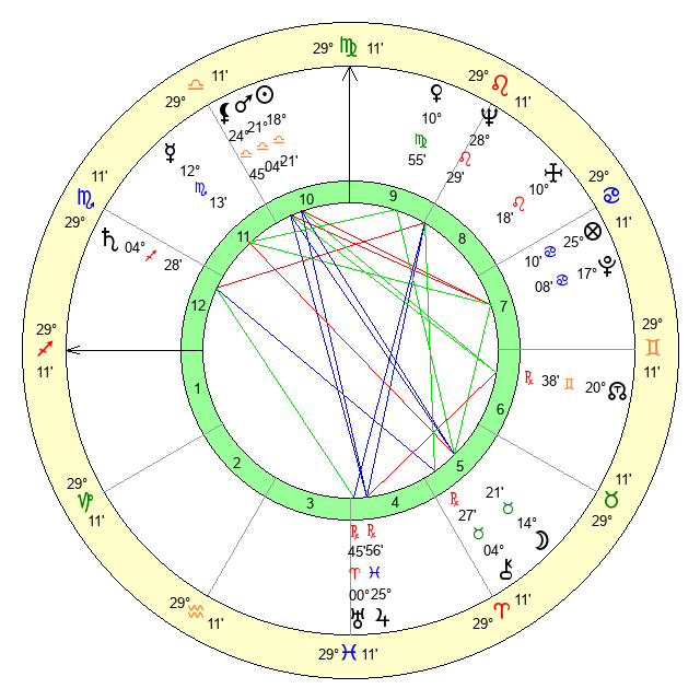| Mars | 21 Libra 5 | 13 Scorpio 55 | 29 Sagittarius 44 |