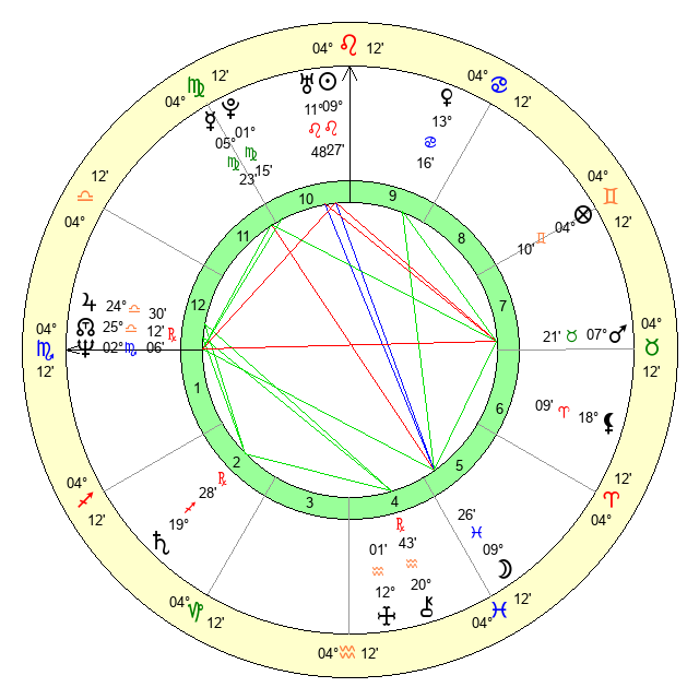 | Mercury | 5 Virgo 23 | 8 Leo 3 | 16 Libra 32 |