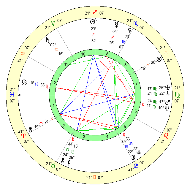 | Mars | 13 Virgo 24 | 5 Leo 39 | 4 Virgo 57 |