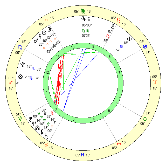 Venus | 0 Virgo 23 | 17 Scorpio 27 | 0 Libra 11 |