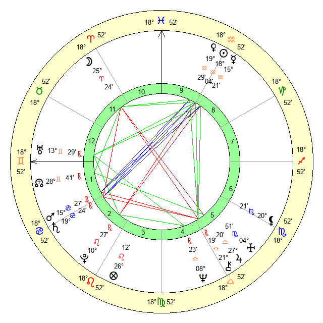 | Neptune | 8 Libra 24 | 28 Pisces 9 | 6 Libra 28 |