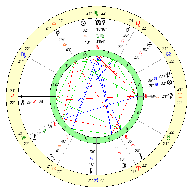 | Sun | 2 Libra 13 | 2 Libra 55 | 4 Aquarius 7 |
