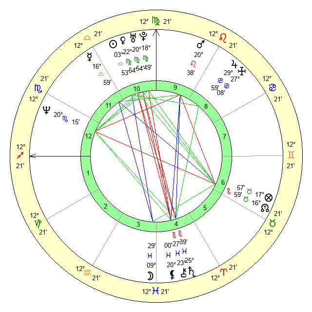 | Venus | 22 Virgo 54 | 9 Virgo 43 | 6 Sagittarius 48 |