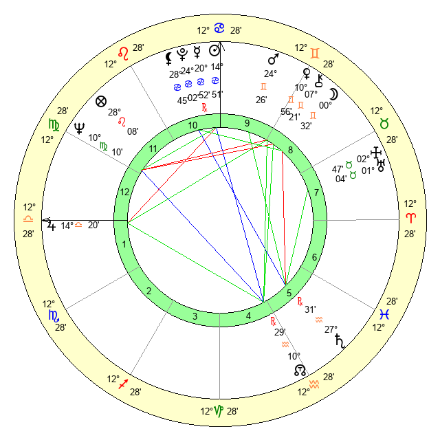 | Moon | 0 Gemini 29 | 9 Sagittarius 30 | 20 Virgo 34 |