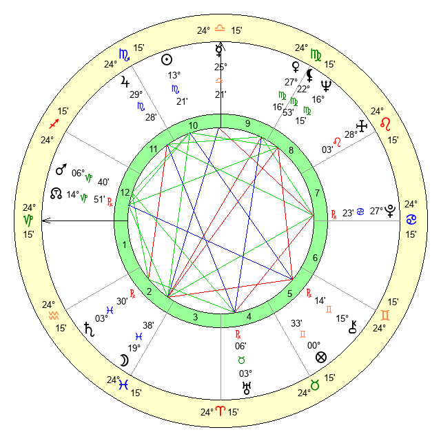 | Neptune | 16 Virgo 15 | 29 Pisces 40 | 16 Virgo 11 |