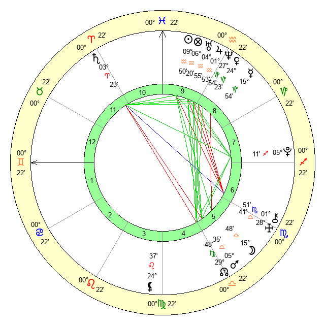 | Moon | 15 Libra 42 | 12 Aquarius 20 | 24 Libra 52 |