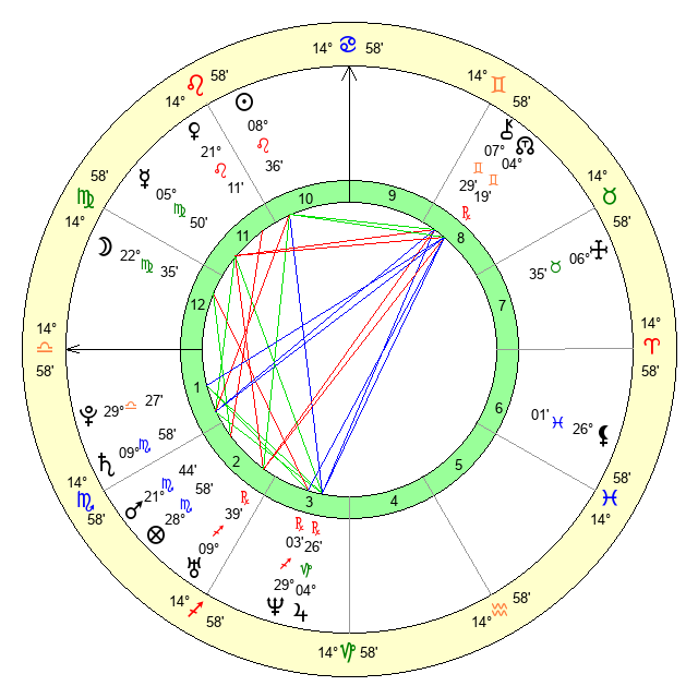 | Moon | 22 Virgo 32 | 29 Libra 21 | 22 Pisces 11 |