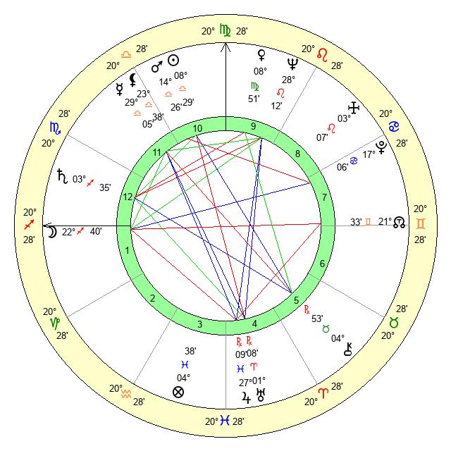 | Moon | 22 Sagittarius 41 | 11 Aquarius 25 | 5 Leo 46 |