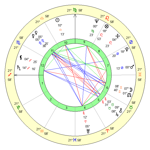 | Venus | 5 Scorpio 26 | 17 Virgo 24 | 2 Pisces 33 |