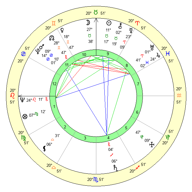 | Neptune | 24 Leo 12 | 1 Aries 9 | 26 Leo 17 |