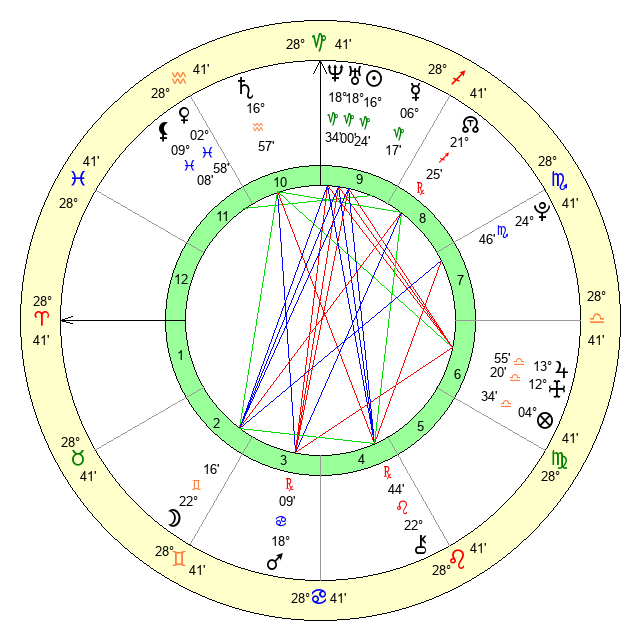 | Moon | 22 Gemini 17 | 12 Aries 52 | 28 Leo 58 |