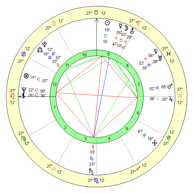 | Moon | 3 Taurus 9 | 28 Libra 28 | 6 Sagittarius 5 |
