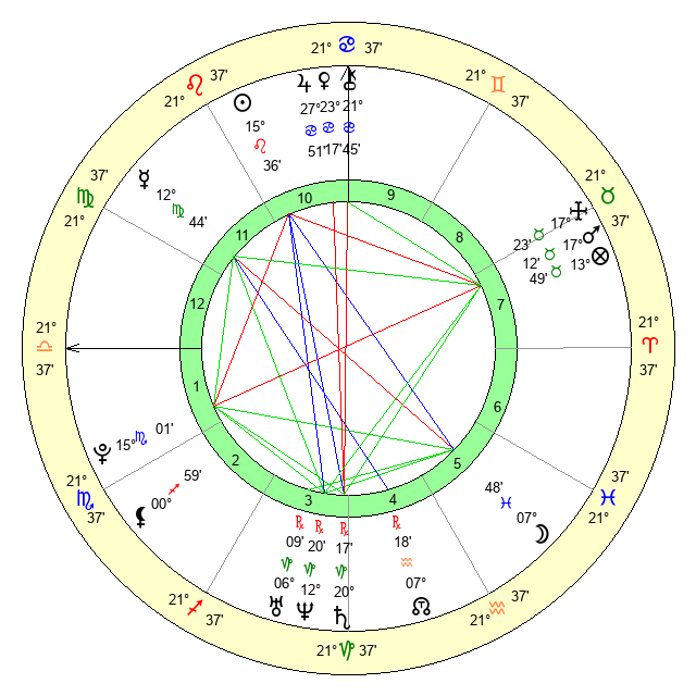 | Venus | 23 Cancer 17 | 9 Cancer 36 | 6 Virgo 16 |
