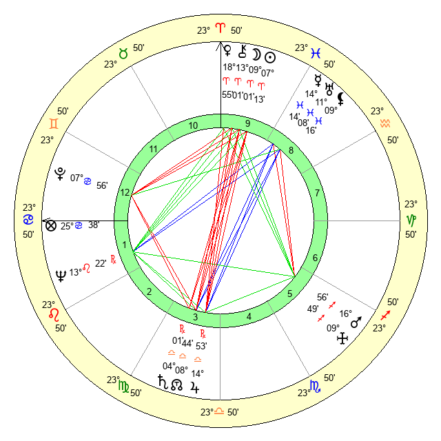 | Moon | 9 Aries 4 | 27 Pisces 47 | 23 Capricorn 21 |