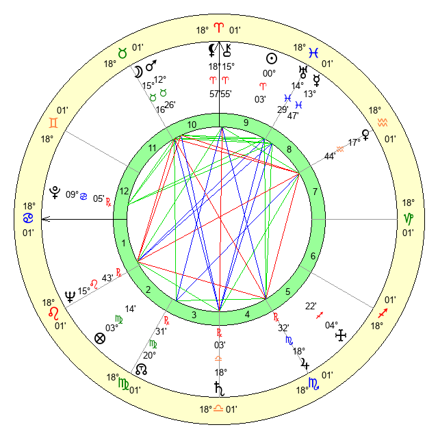 | Sun | 0 Aries 3 | 1 Aries 20 | 8 Cancer 49 |