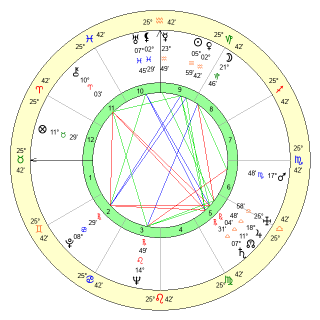 | Venus | 2 Aquarius 43 | 23 Pisces 3 | 10 Gemini 34 |