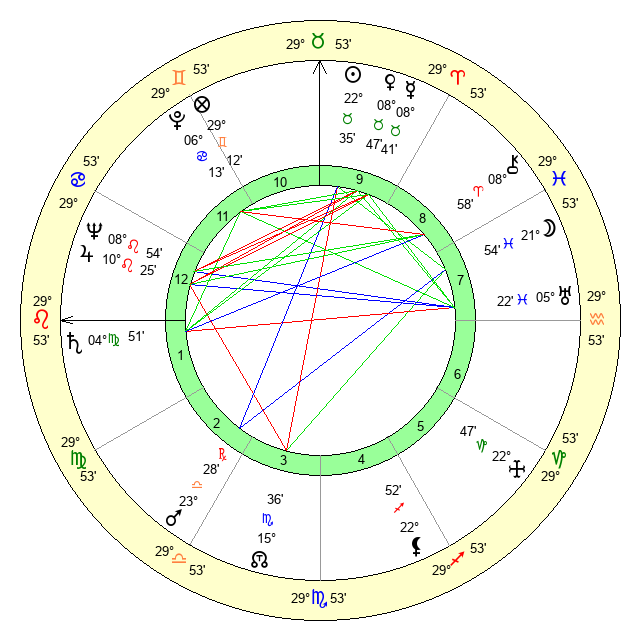 | Saturn | 5 Virgo 34 | 28 Pisces 58 | 14 Virgo 6 |