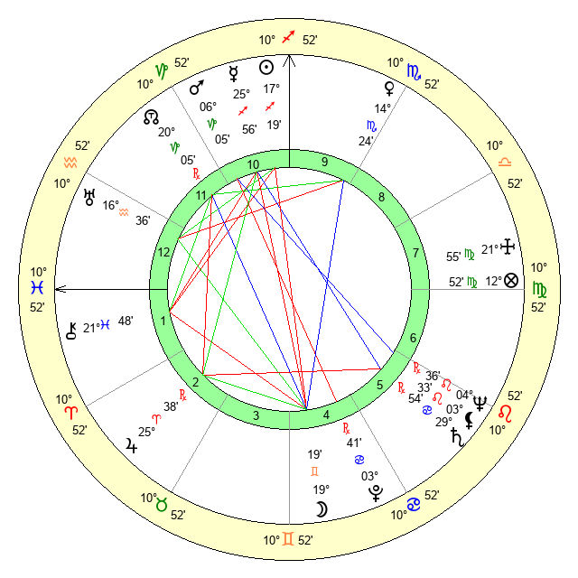 | Moon | 19 Gemini 15 | 21 Leo 57 | 17 Gemini 56 |