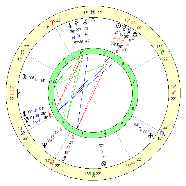| Jupiter | 29 Pisces 38 | 11 Gemini 21 | 24 Aries 52 |