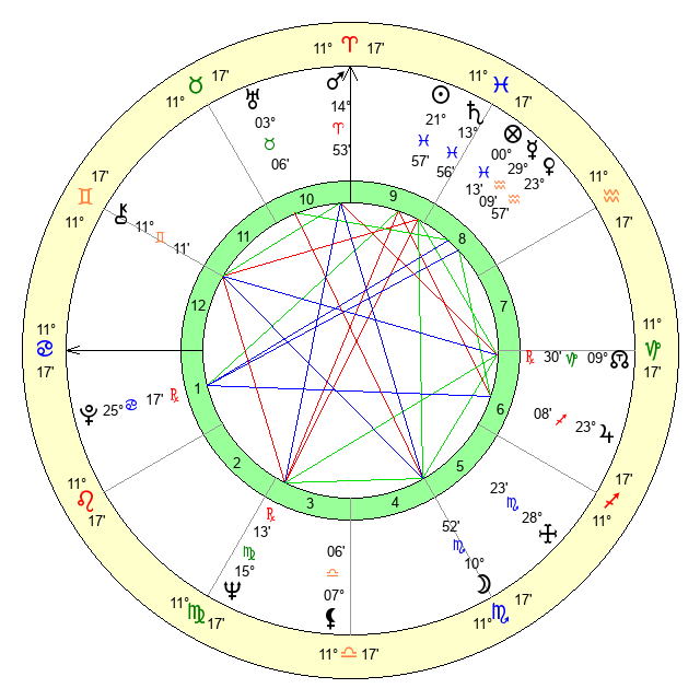 | Pluto | 25 Cancer 17 | 3 Aquarius 10 | 25 Cancer 55 |