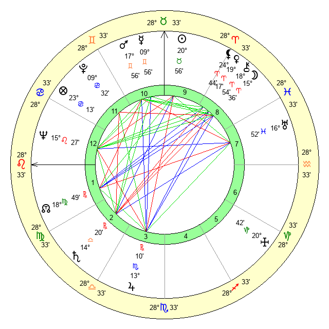 | Venus | 19 Aries 18 | 8 Aries 2 | 23 Leo 27 |