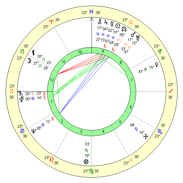 | Jupiter | 4 Pisces 0 | 11 Gemini 46 | 26 Pisces 2 |