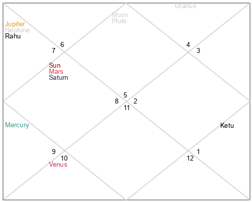 | Rahu | 8 Scorpio 20 | 13 Pisces 8 | 4 Scorpio 44 |