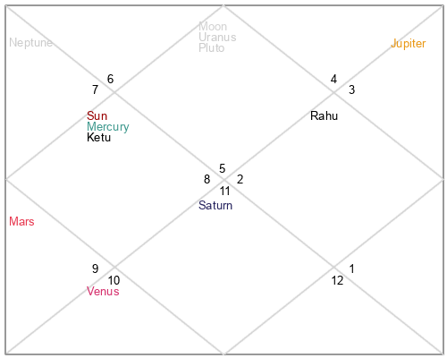 | Ketu | 3 Sagittarius 33 | 13 Virgo 4 | 0 Sagittarius 23 |