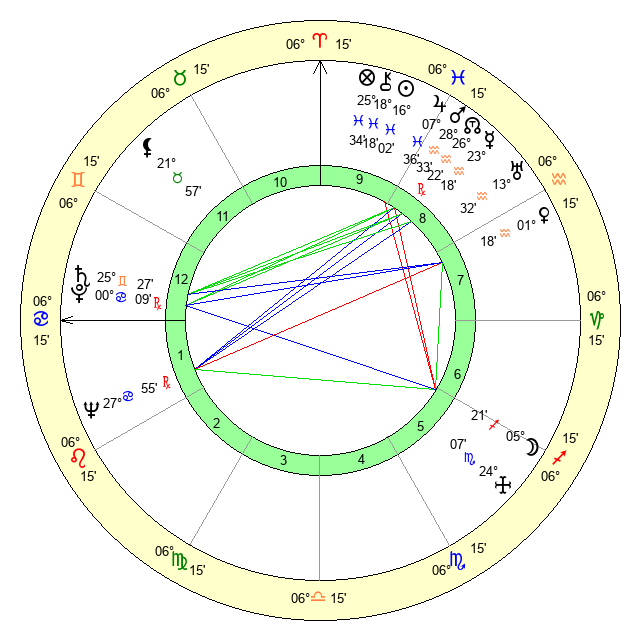 | Moon | 5 Sagittarius 20 | 0 Cancer 21 | 12 Sagittarius 8 |