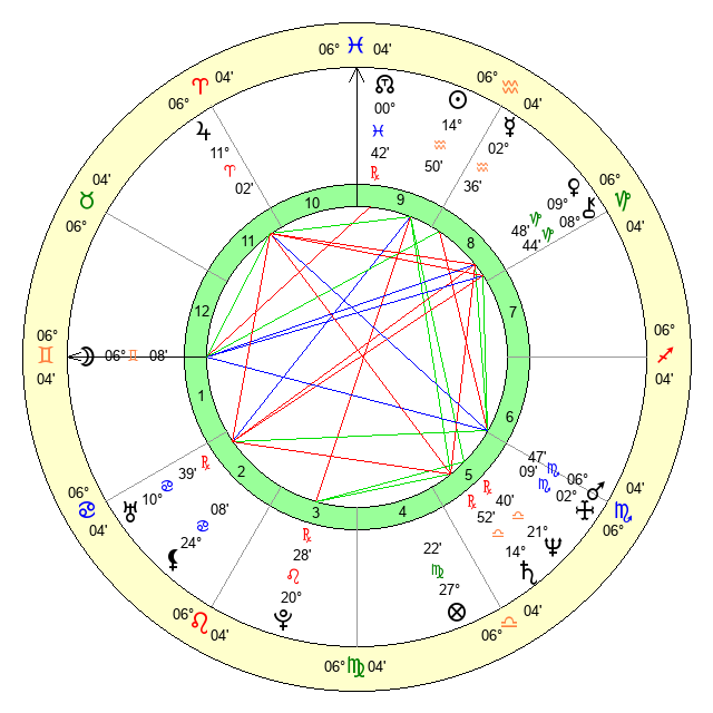 | Moon | 6 Gemini 10 | 7 Taurus 55 | 1 Aquarius 57 |