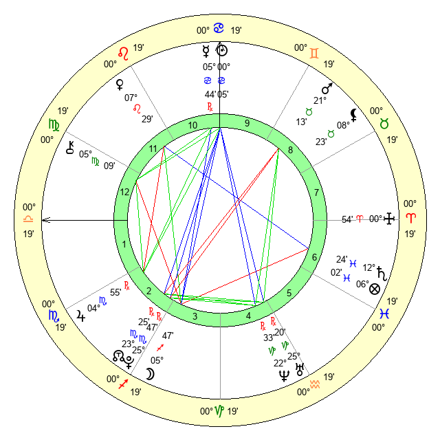 Jupiter | 4 Scorpio 45 | 2 Cancer 42 | 5 Scorpio 14 |