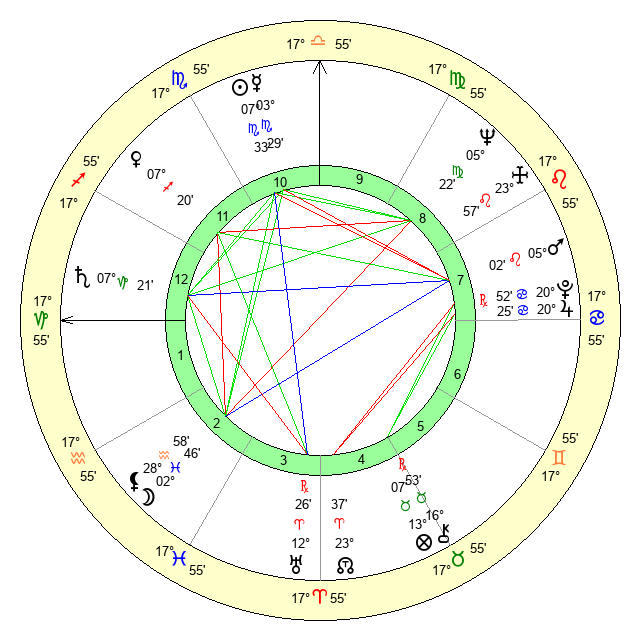 | Neptune | 5 Virgo 23 | 29 Pisces 47 | 4 Virgo 58 |