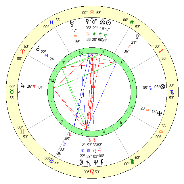 | Moon | 22 Cancer 1 | 26 Virgo 12 | 20 Cancer 15 |