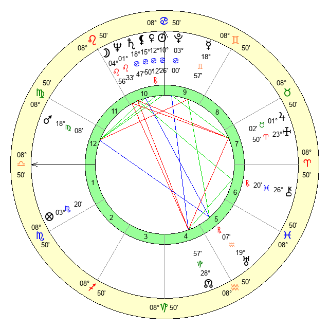 | Sun | 10 Cancer 26 | 11 Cancer 4 | 25 Libra 58 |