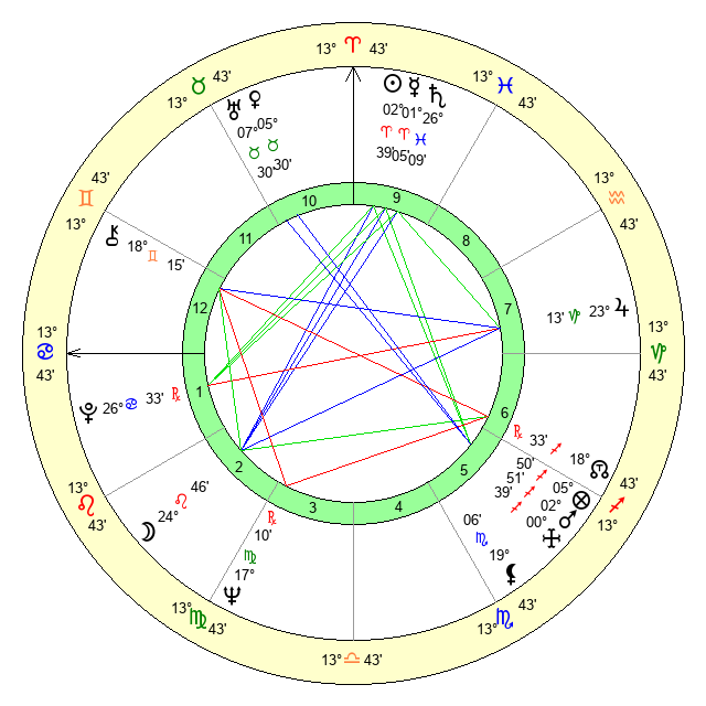 | Neptune | 17 Virgo 10 | 29 Pisces 44 | 16 Virgo 18 |