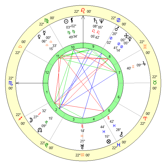 | Venus | 6 Libra 15 | 2 Leo 25 | 7 Aquarius 41 |