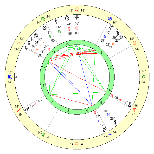 | Mercury | 6 Virgo 11 | 7 Leo 28 | 2 Sagittarius 45 |