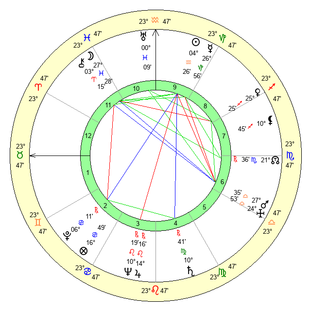 | Saturn | 11 Virgo 27 | 16 Pisces 41 | 5 Virgo 33 |